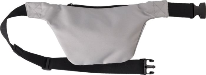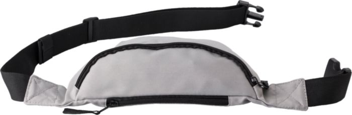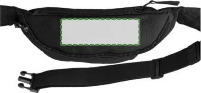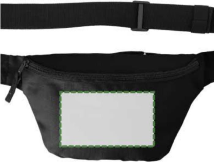 Polyester (600D) waist bag with one front pocket and one small pocket on the backside. Both pockets can be closed by a zipper. With black adjustable strap with firm buckle closure.