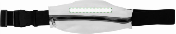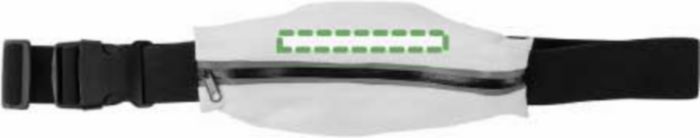 Polyester water resistant waist bag with adjustable elastic band. Maximum size: 97 cm.
