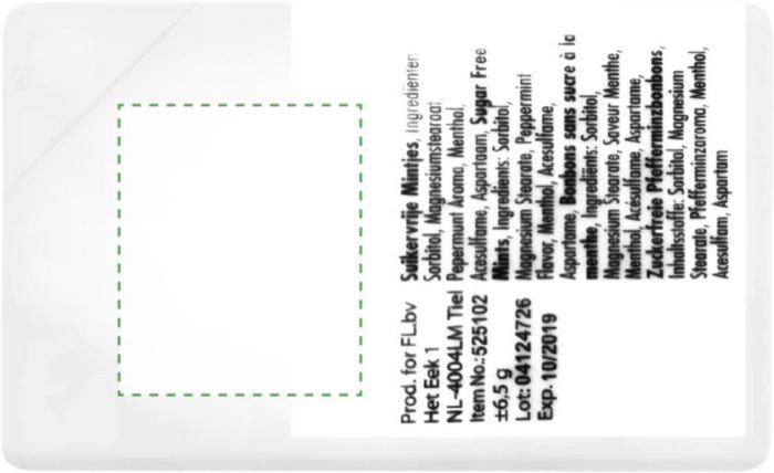 Plastic mint card with approximately 6,5 grams of sugar free mints.