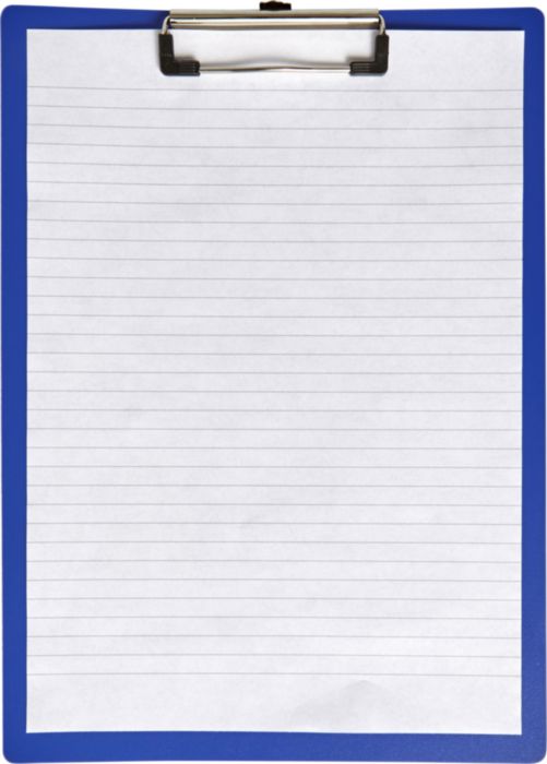 Plastic clipboard suitable for A4 documents or smaller.