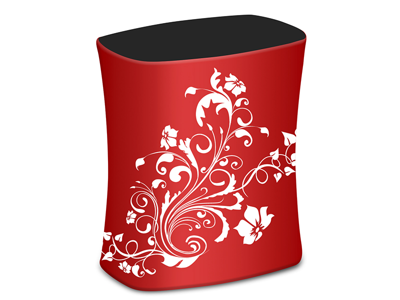 Takes almost no space when packed in its transporttion bag. Rektangular Promotion desk in tension fabric. Size 80×40 cm H 97 cm. Graphic size 239x100cm. Packed in an oxford bag.