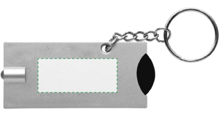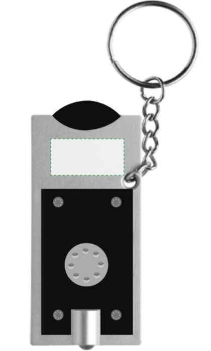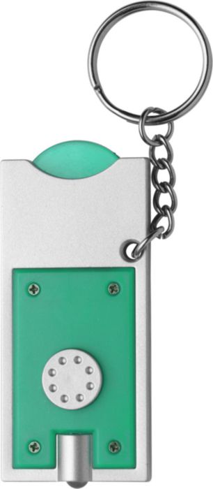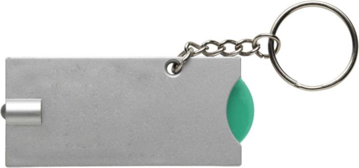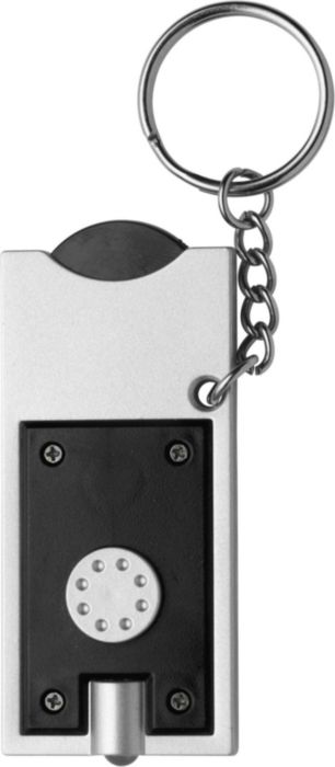 PS key holder with a white LED light and plastic shopping cart coin (€0.50 size, not suitable for UK). Batteries included.