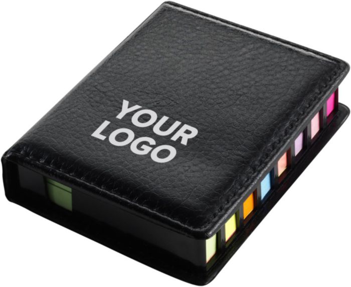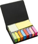 Plastic case holding approximately 1600 self-adhesive memo papers and labels in different colours.