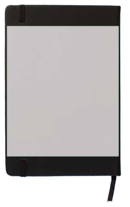 PU notebook (approx. A5), with 96 blank pages, ribbon marker, and elastic band over the cover.