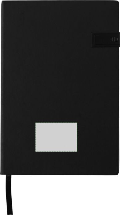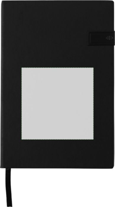 PU notebook (approx. A5) with 16GB USB drive integrated in the cover, 96 lined pages and ribbon marker.
