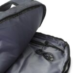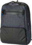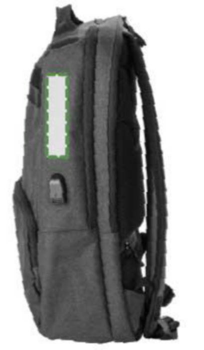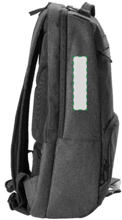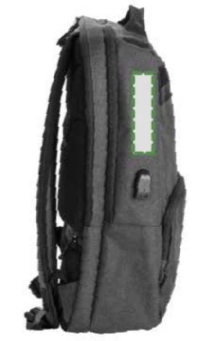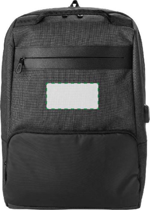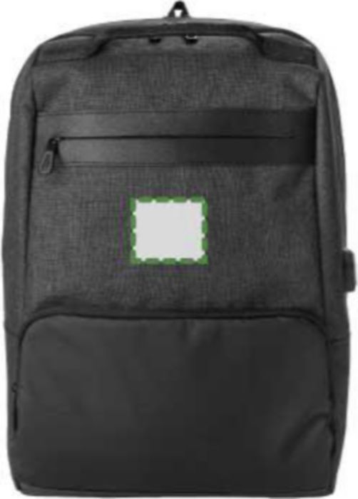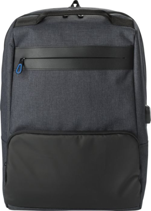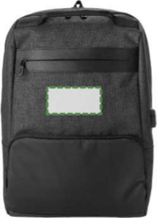 PVC backpack with two main compartments, including a compartment suitable for a laptop (15 inch). The backpack has an anti-theft back pocket and two zippered pockets in the front. With padded, adjustable shoulder straps.