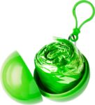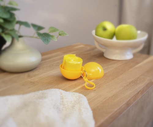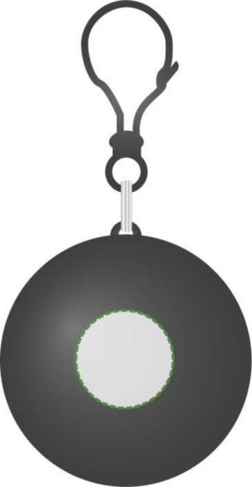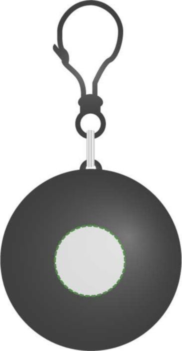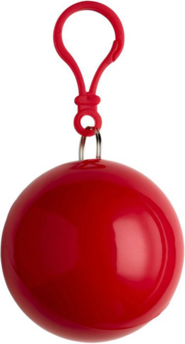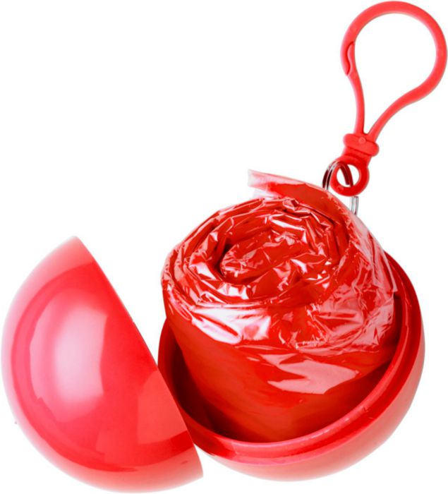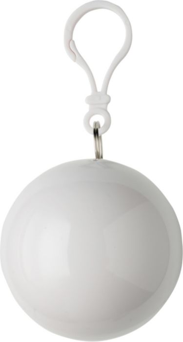 PVC Poncho in an ABS plastic ball with a snap hook attachment.