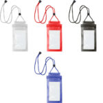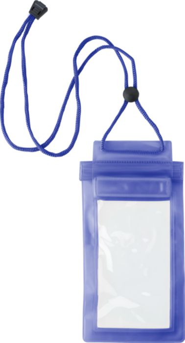 Plastic water resistant, protective pouch for mobile devices, with closure strip. Including cord (with safety closure) approximately 46 cm long. You can operate the screen of your phone as normal thanks to the special material of the cover.
