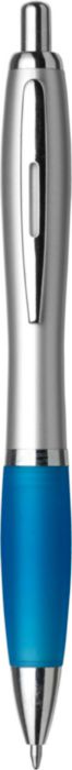 Recycled ABS ballpen with rubber grip. Blue ink.