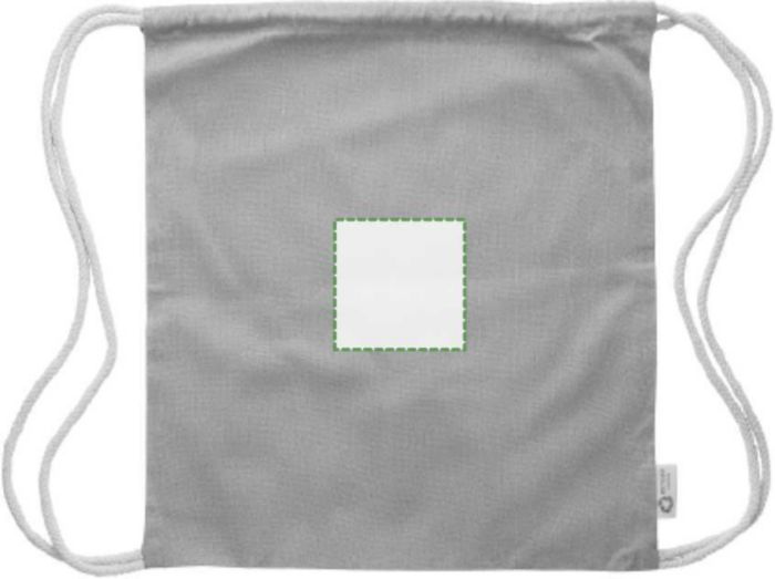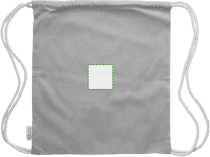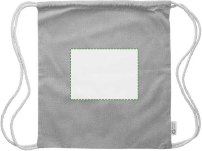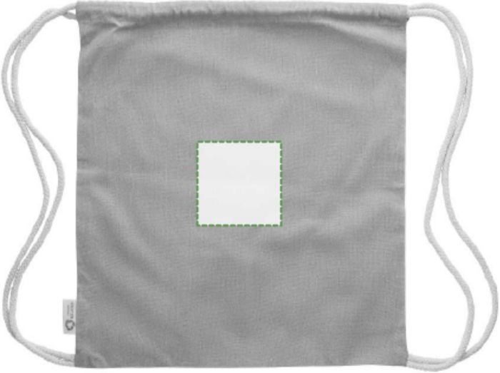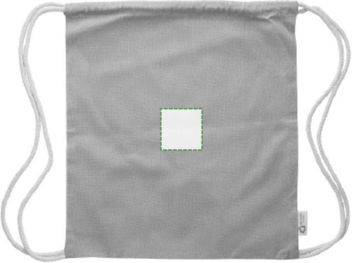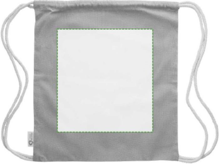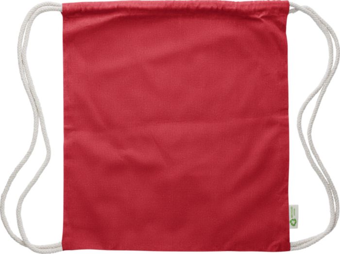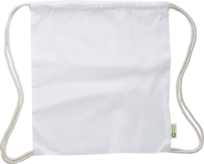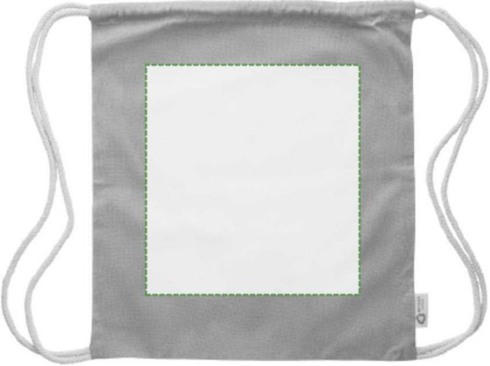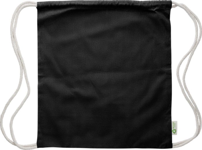 Recycled cotton drawstring bag in solid color. Solid strings and reinforced corners. Made from 100% recycled cotton.