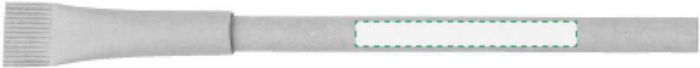 Recycled paper and graphite pencil. Residue-free inkless pencil. Paper body with a durable metal alloy nib. As you write, it oxidizes the surface of the paper, leaving no residue behind.