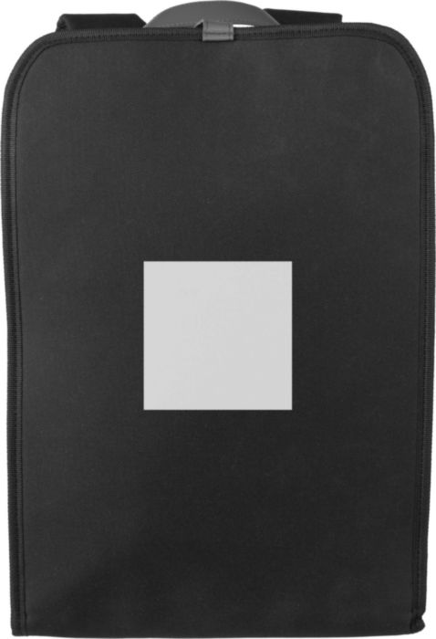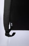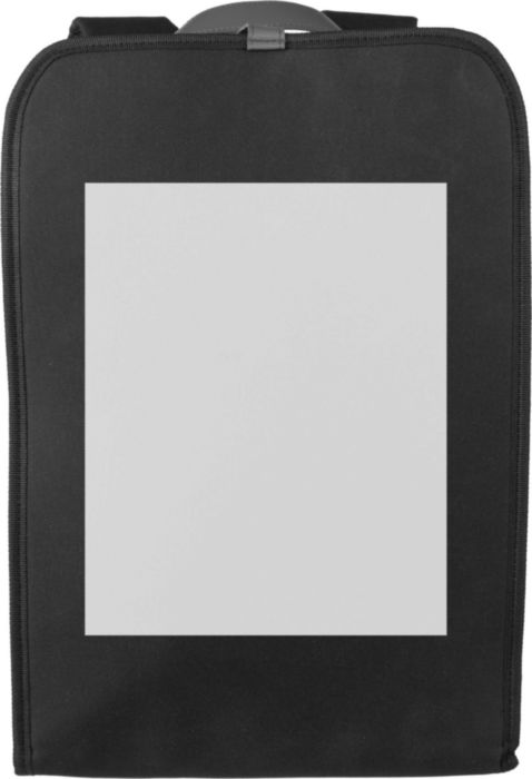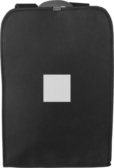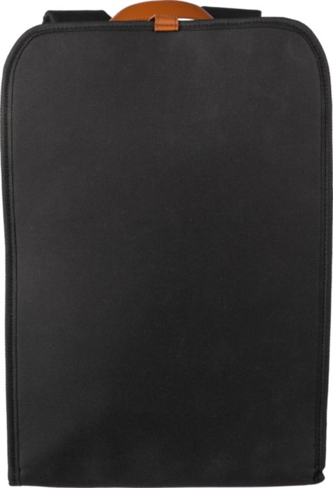 rPET (600D) polyester waterproof Oxford fabric backpack with full flat front side. The backpack has a laptop pocket (15 inch) and a mesh pocket inside with adjustable straps. Includes PU loop and PU magnet closure.