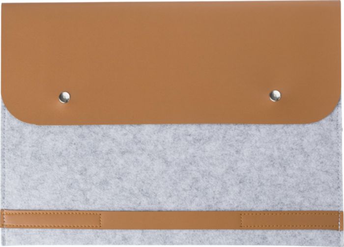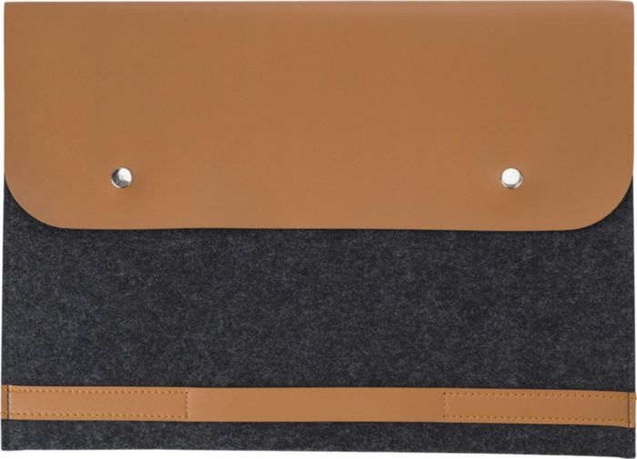 RPET felt laptop (14 inch) pouch with PU details. Closes with two buttons.