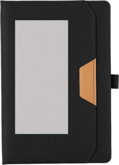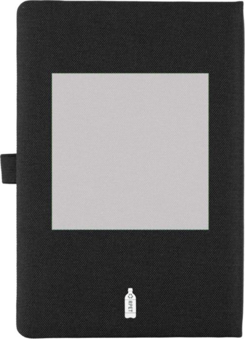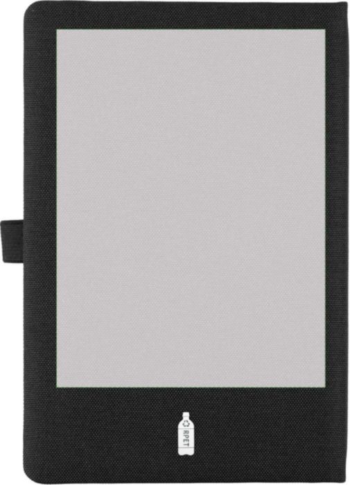 rPET notebook (approx. A5) with PU detail and 100 lined pages (80gsm). Individually packaged in tissue paper.