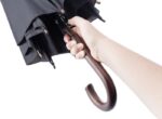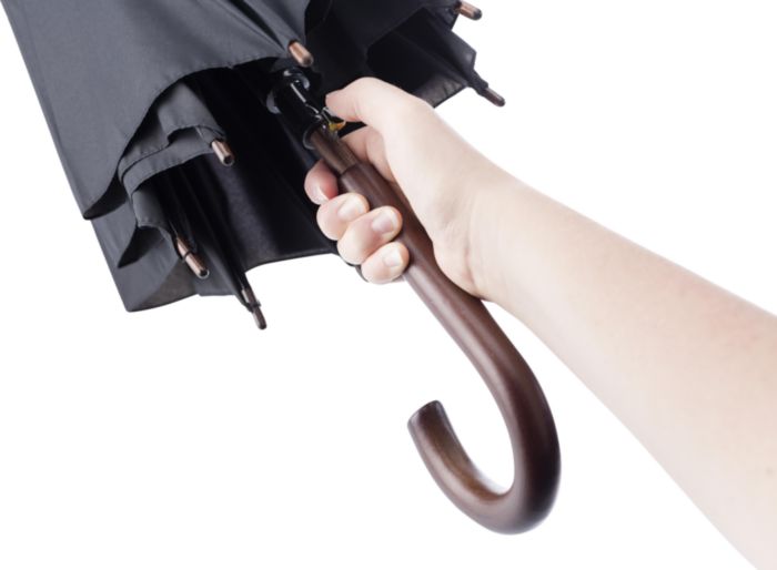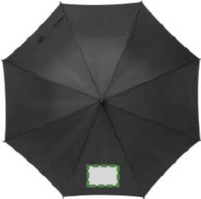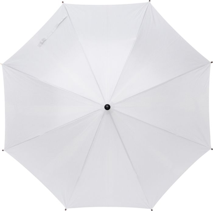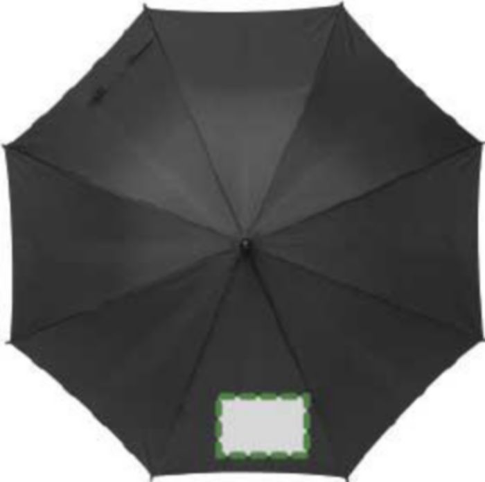 RPET polyester (170T) automatic umbrella with eight panels. Opens and closes automatically. Metal and fibreglass frame and plastic handle.
