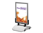 A high quality spring set with a stable vacuum-formed plastic foot.Fill the plastic tub with sand or water to the desired weight. Easy to remove after use due to the pair of wheels that are mounted on the foot. Thanks to the plastic foot, this Poster sign is well protected against potential corrosion. Standard sizes are 50 x 70 cm and 70 x 100 cm. Delivered 1 pc in a carton.