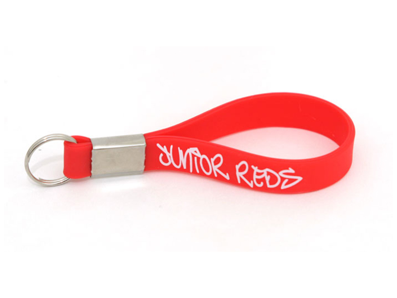 Soft key-ring in 100 % silicone, with metal bean and split ring. Logo is printed or moulded. Choose your own bottom colour.