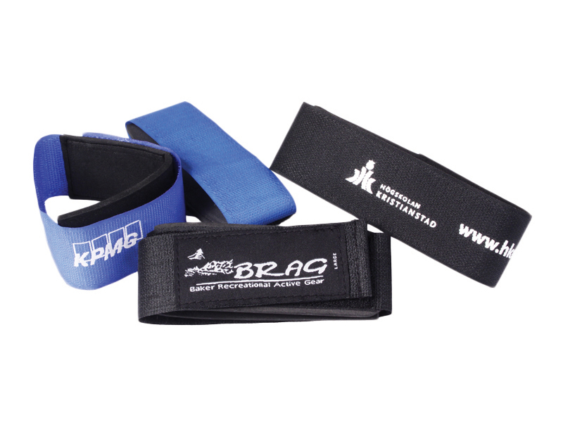 Practical holder for slalom ski. Nylon band in optional colour with black EVA and velcro closure.