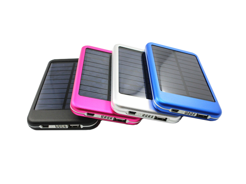 Charge electronic devices with solar power. With LED-indicator. Aluminium cover. Input/output 5V1.0A RoHS