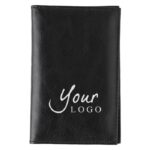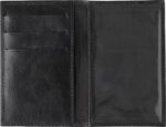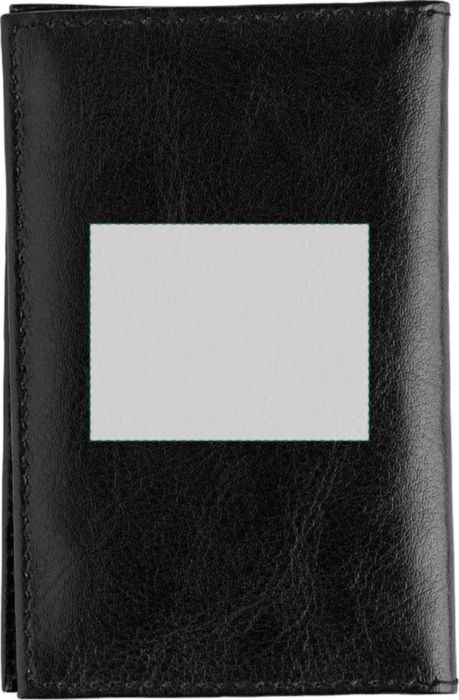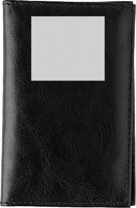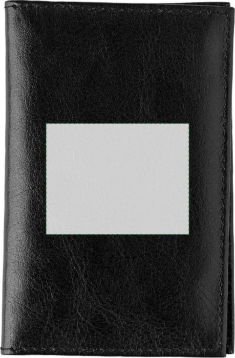 Leather (goat leather) RFID (anti-skimming) credit card wallet with three pockets on the left side and large transparent window on the right.
