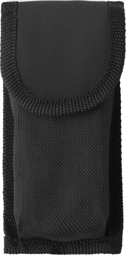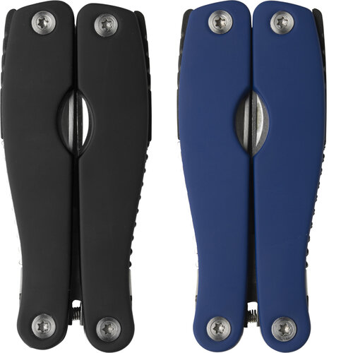 Stainless steel multi tool with soft feel handles and ten functions. Packaged in a nylon pouch with belt loop.