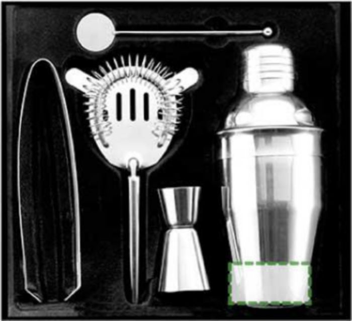 Stainless steel cocktail set with shaker (350 ml), including an ice tong and a spoon. Packaged in a gift box.