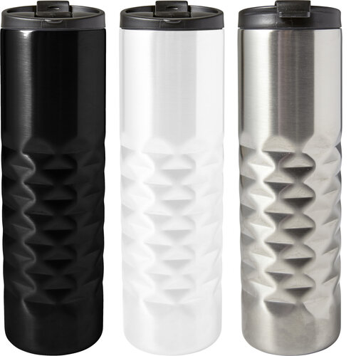 Stainless steel thermos flask (460 ml), double walled. The lid has a drinking opening with cap.
