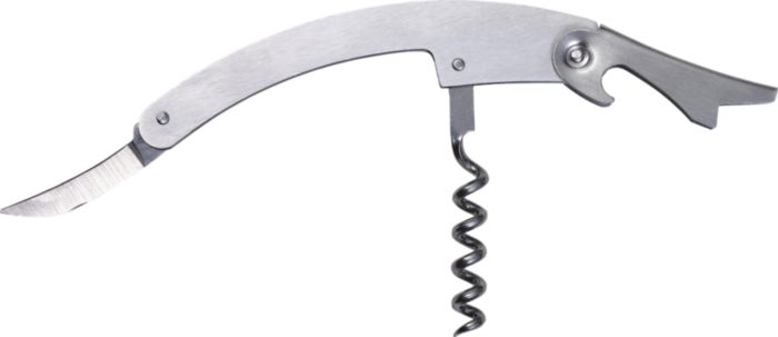 Stainless steel waiter’s knife. Including: a bottle opener, corkscrew, and foil cutter.