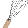 Stainless steel whisk with a beech wood handle, ideal for everyday cooking tasks. Supplied in bulk with a hang tag containing additional information.
