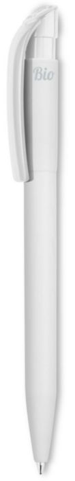 Stilolinea S45 BIO ballpoint pen, made of 75% PLA, blue ink, with a white clip. Provided with German Dokumental Ink.
