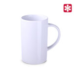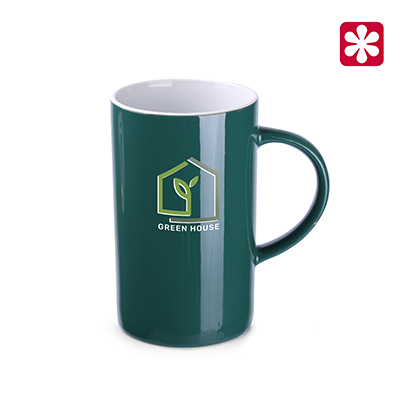 Tall mug with an ergonomic handle and a large possibility of decorating. Available in four trendy colors.