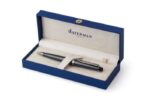 Waterman Expert metal ballpen with ruthenium trim. Blue ink. Pre-packaged in giftbox.