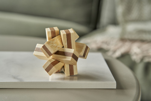 Wooden patience game. Individually packaged in a brown carton box.