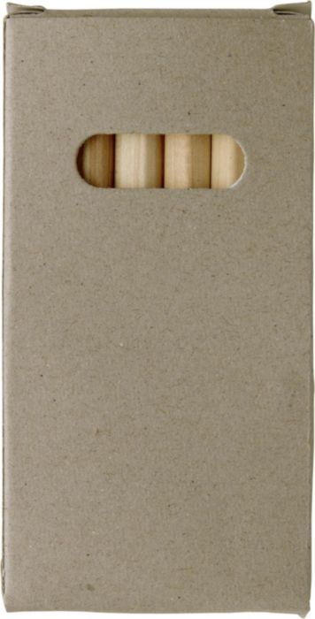 Set of six small colored pencils in a recyclable box.