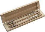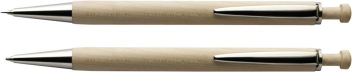 Maplewood writing set consisting of a ballpen with blue ink and mechanical pencil. Packaged in a beechwood pen case.