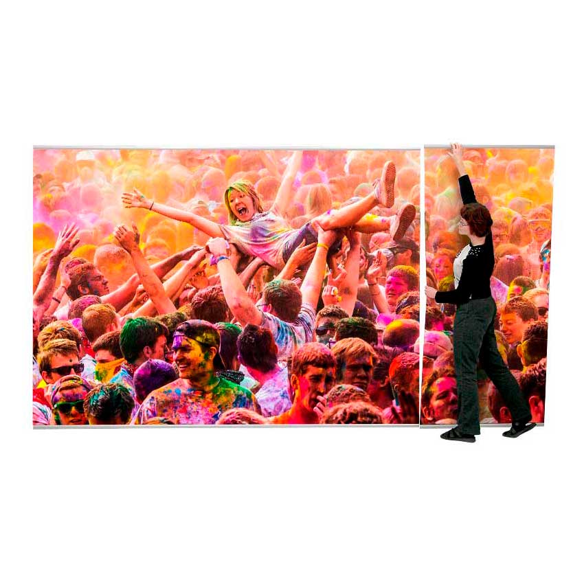 4 Screen Classic är ett kostnadseffektivt sätt att få upp ditt budskap i stor skala, perfekt för events och större kampanjer där allt från pris till tiden det tar att få upp budskapet är viktigt. Konstruktionen är diskret, enkel och du sätter upp den på mindre än en minut! Tack vare vikten i stödpinnen står 4 Screen Classic stadigt, trots sin låga vikt.