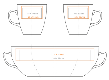 DecorationsTryck på handtaget; Tryck på insidan; Tryck på botten, insida; Tryck på bottens utsida; Kantband; Namntryck; Guldtryck; Matt Guldtryck; Silvertryck; Matt Silvertryck; Dekoration runt äggformad yta; Termotryck