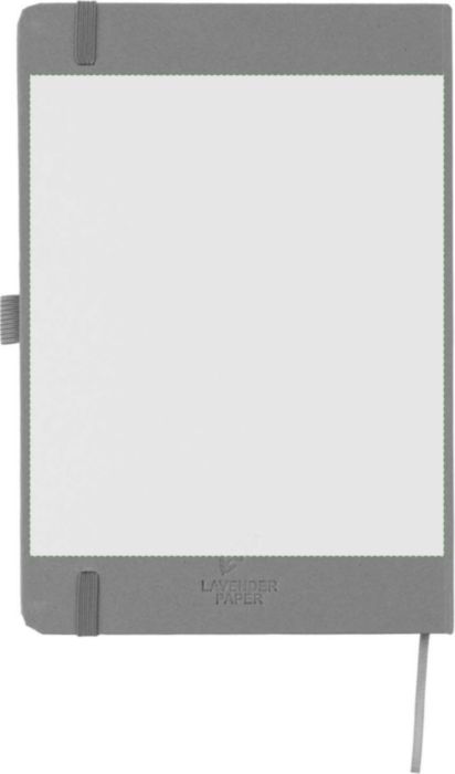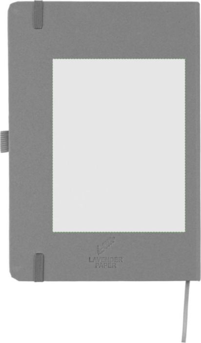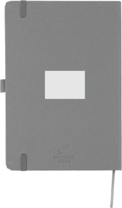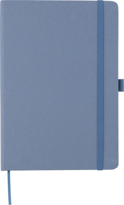 Anteckningsbok (ca A5) av återvunnet bioavfall och kartong, med 80 linjerade sidor, tryckt med sojabläck. Varje anteckningsbok har prägling på baksidan som motsvarar färgen på det använda avfallet: grönt för citrus, rött för körsbär, blått för lavendel, khaki för vindruvor och ljusbrunt för mandel. Omslaget har Favini-papper från Italien och har 70 g papper.
