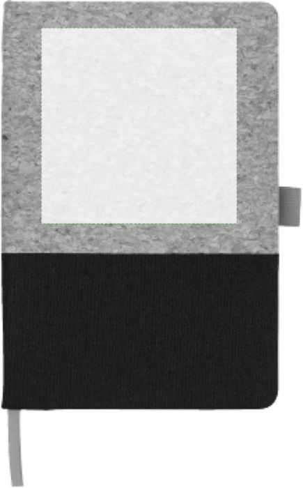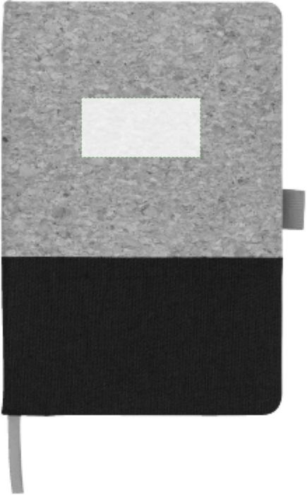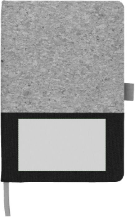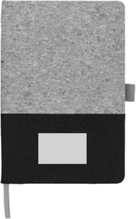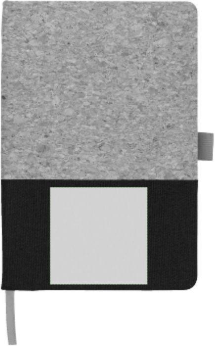 Anteckningsbok (A5) med kork och bomull (ca A5) med 80 linjerade sidor. Ögla för att hålla fast penna.