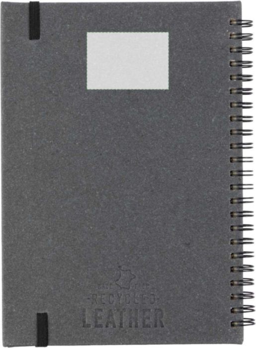 Anteckningsbok i återvunnet läder A5 med 80 sidor (70 g). Präglad symbol för återvunnet läder på baksidan.