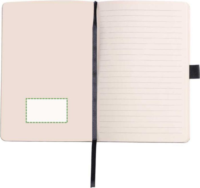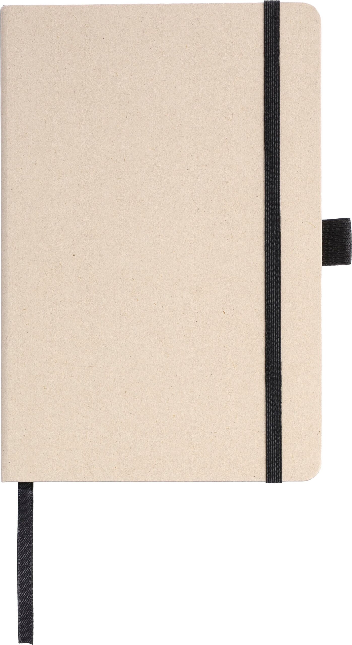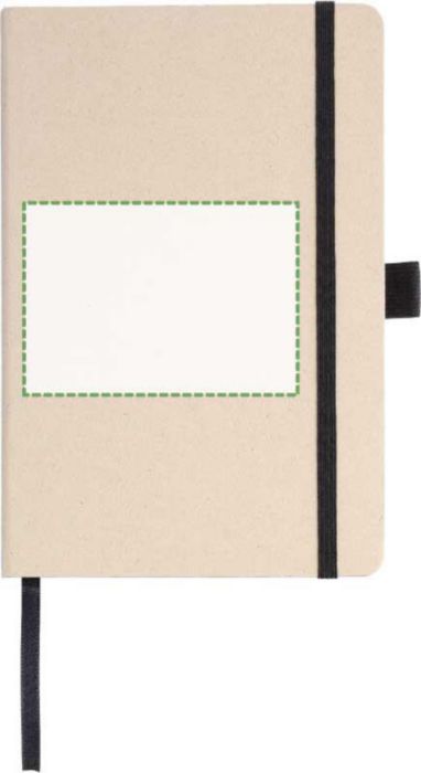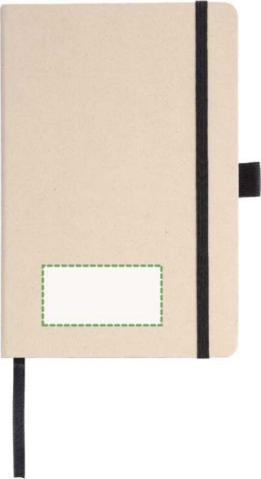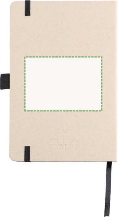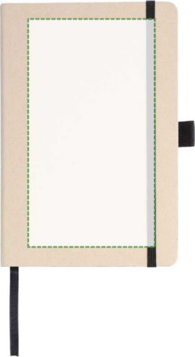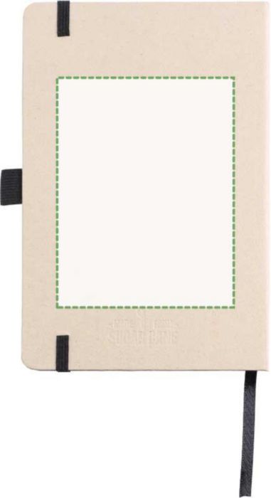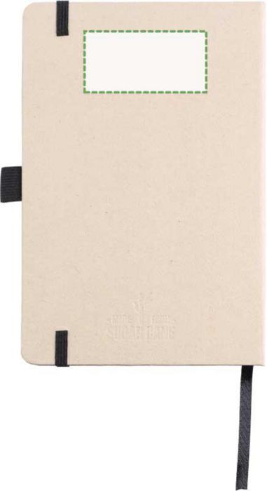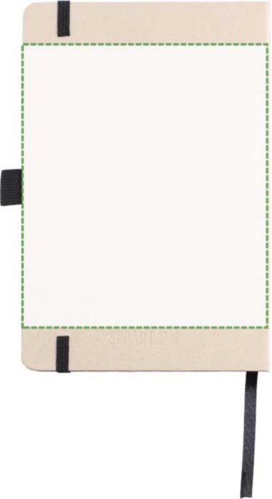 Anteckningsbok (ca A5) med 80 raderade sidor (80 gsm) gjord av sockerrör. Med ett elastiskt band, pennögla och bandmarkör. Präglad sockerrörslogga på baksidan.