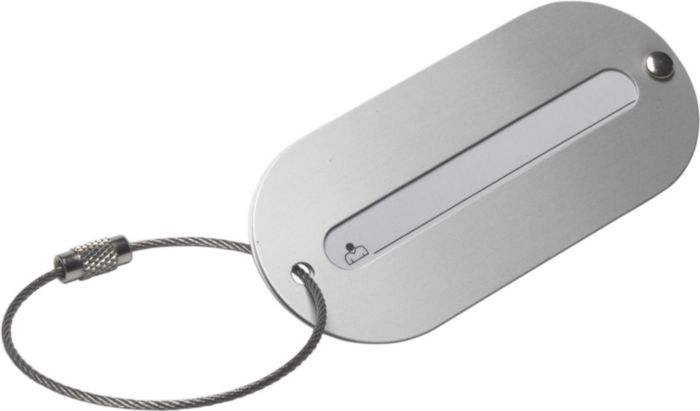 Bagagebricka i aluminium som hjälper dig att hitta rätt väska snabbt och lätt. Med en gravyr så får den ett exklusivt utseende.