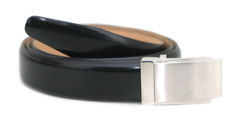 Svart tidlöst Fashionbälte från italien med silverfärgat spänne. Är 30 mm brett och levereras i olika längder för att passa stora målgrupper.
