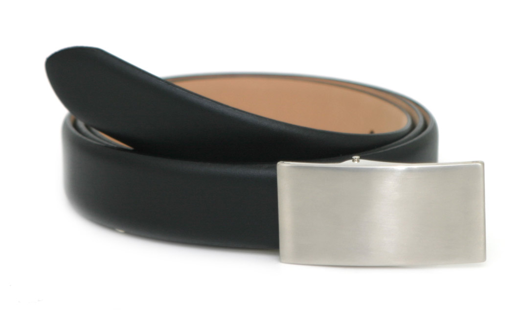 Svart läderbälte från Italien i bredden 30 mm. Ska du göra ett egendesignat spänne, är detta det perfekta bältet. Fungerar också som utbytesbälte till spänne U. Levereras i olika längder för att passa stora målgrupper.