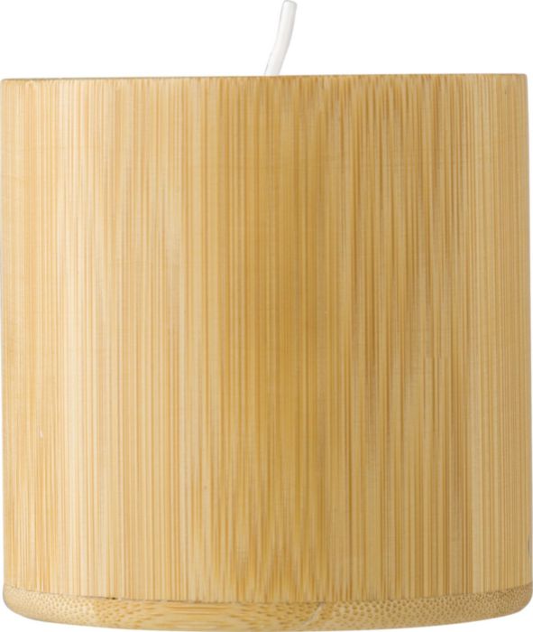 Bambuljus med växtbaserat vax. Ljuset innehåller huvudsakligen växtbaserat vax (karnaubavax) och har en brinntid på ca 30 timmar. Packad individuellt i en vit box.