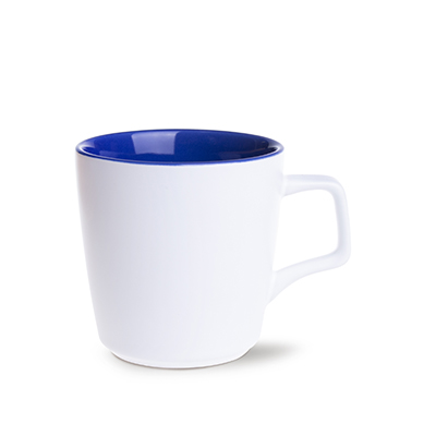 En mugg från BARREL-familjen med ett karakteristiskt polygonformat handtag. Dessutom kännetecknas Barrel Pure -muggen av en färgstark insida och en vit, matt yta på utsidan.