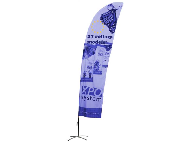 Beachflagga i polyester, tillverkad i Europa.
