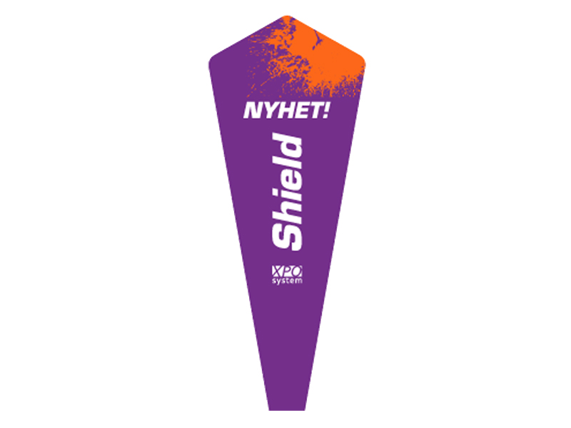Stililga och kreativa modeller som skapar extra uppmärksamhet för din kampanj. Beachflagga Shield. Inkl flagga, mast, bag och XPO spike. Mast 490 cm, flagga 149×439 cm. Levereras 1 set i en svart nylonbag.