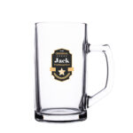 Klassiskt ölglas med stora tryckmöjligheter. Har intressant grepp.