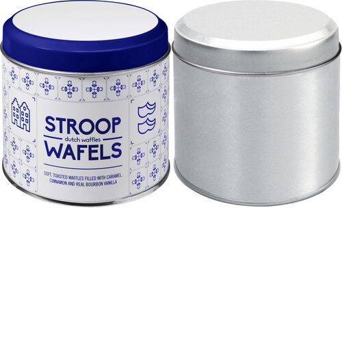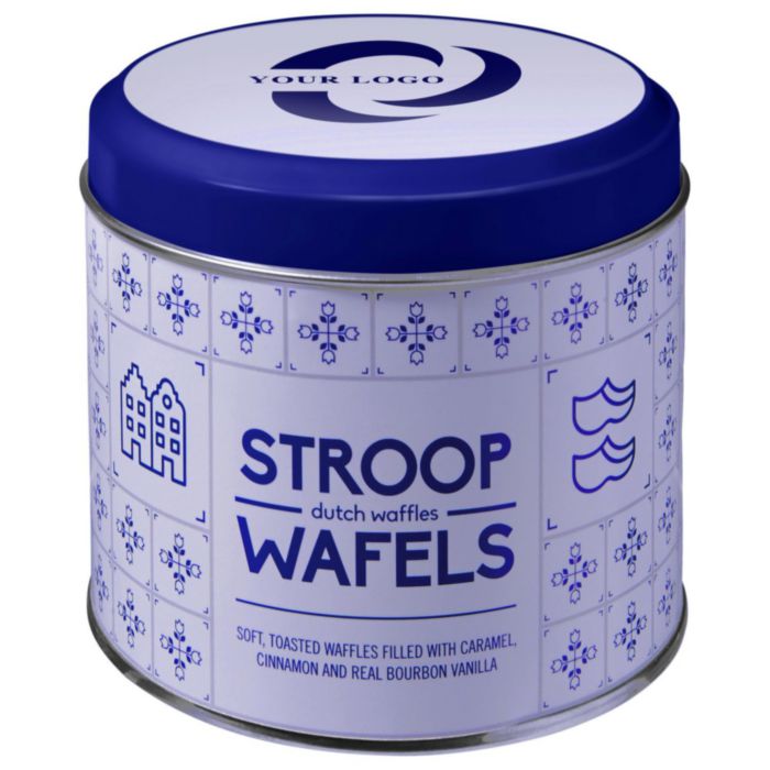 Burk med traditionellt holländskt mönster, att användas till holländska våffelkakor. Plats för logotryck på locket.